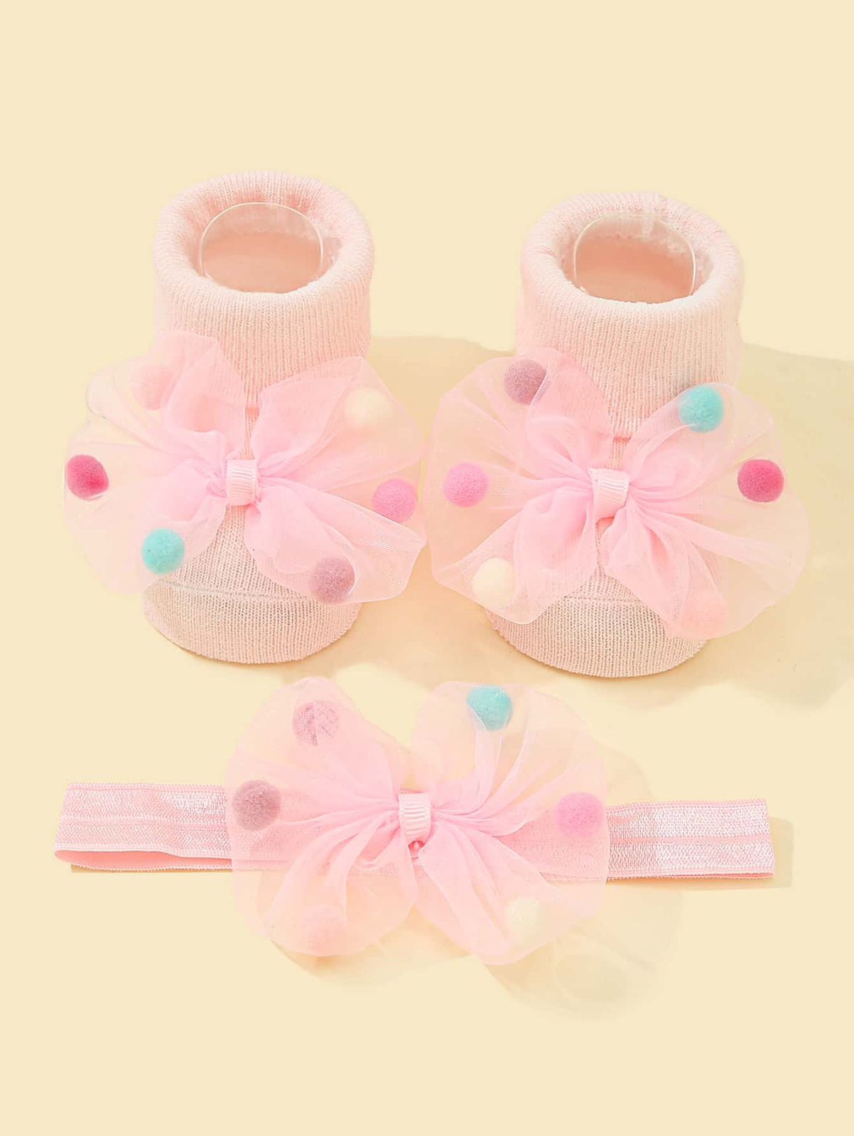Calceta y diadema pompón muticolor